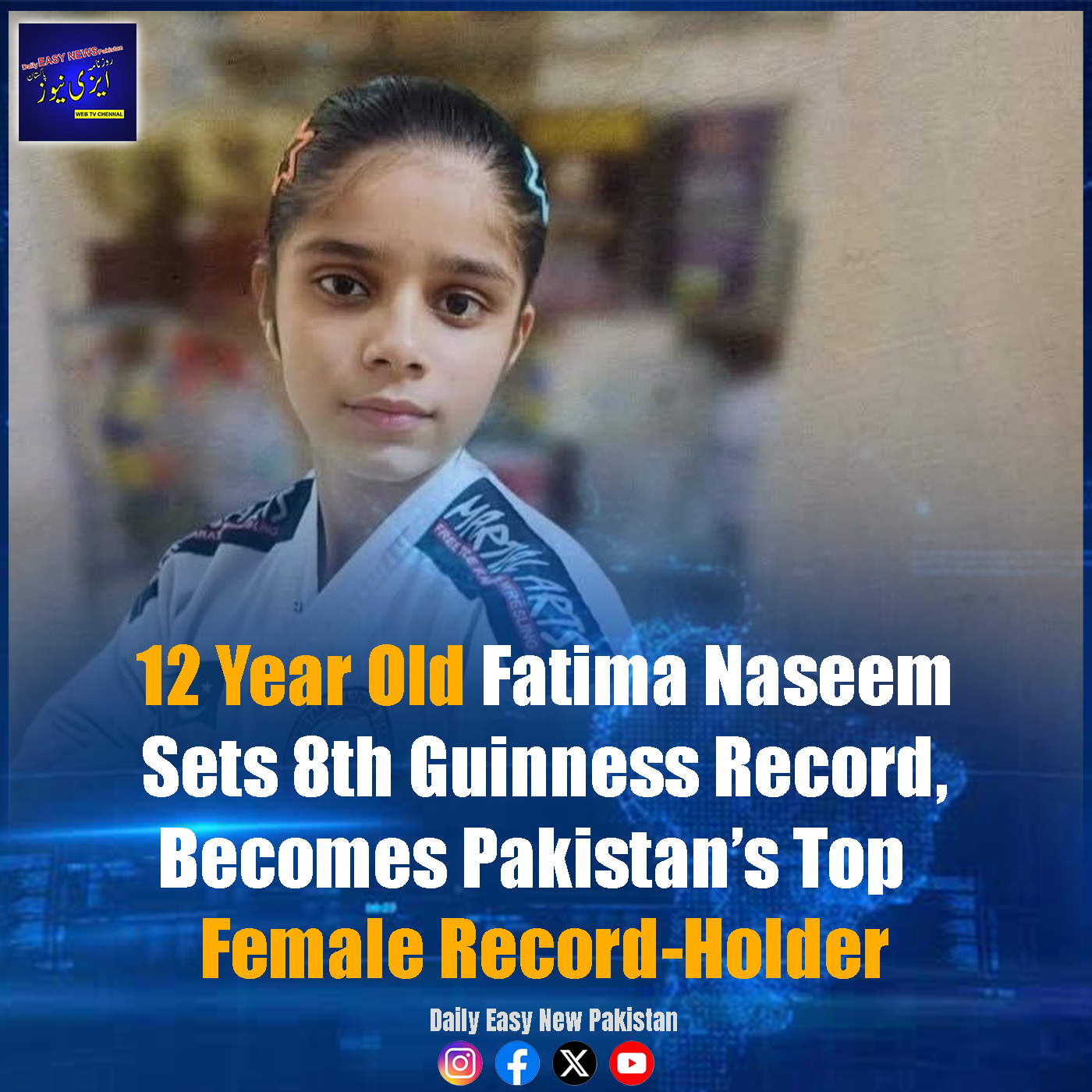 Twelve-year-old Fatima Naseem from Karachi’s Shah Faisal Colony has set her eighth Guinness World Record, making her Pakistan’s top female record-holder.