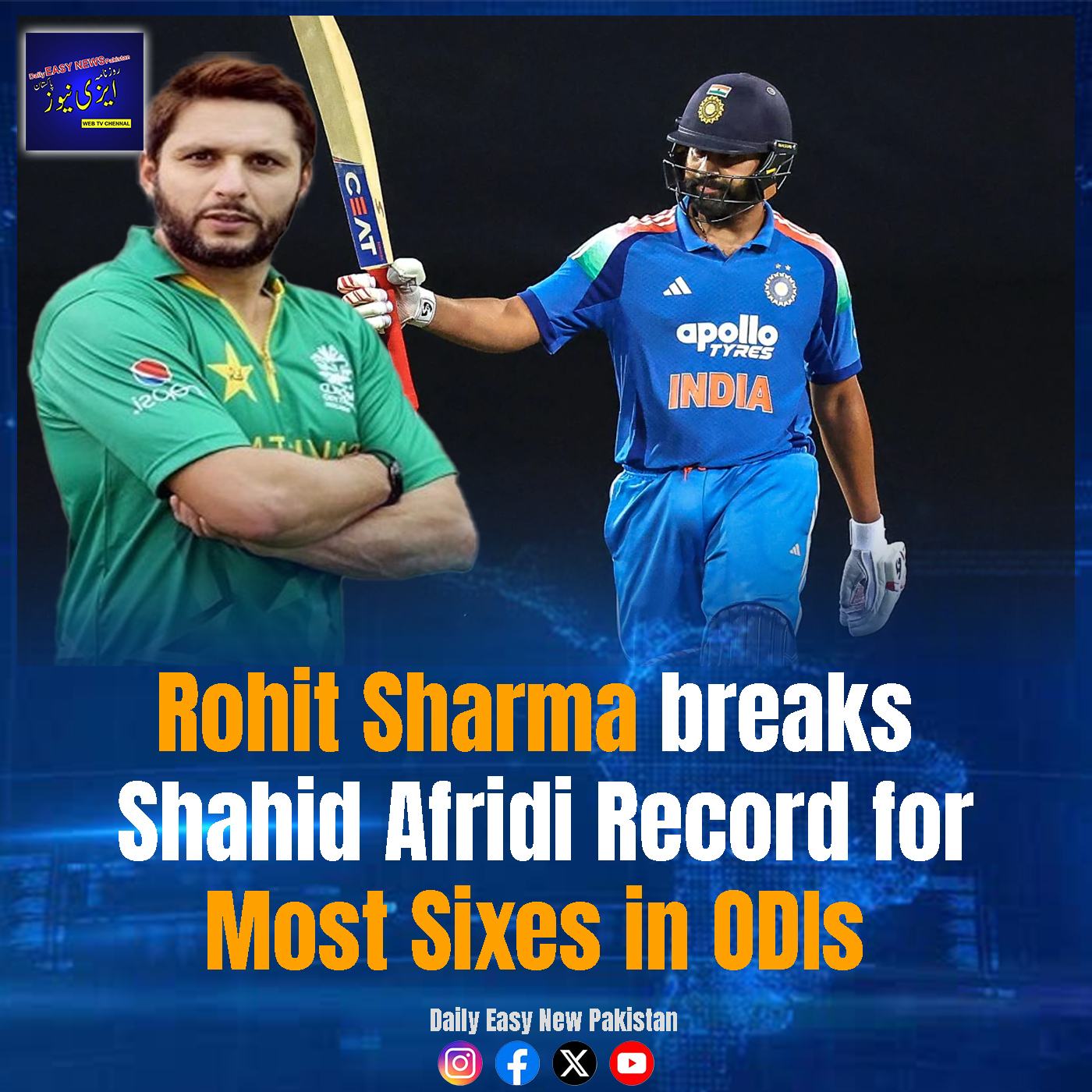Sharma now has 352 sixes in ODIs, surpassing Afridi’s 351, achieved over 269 innings compared to Afridi’s 369.