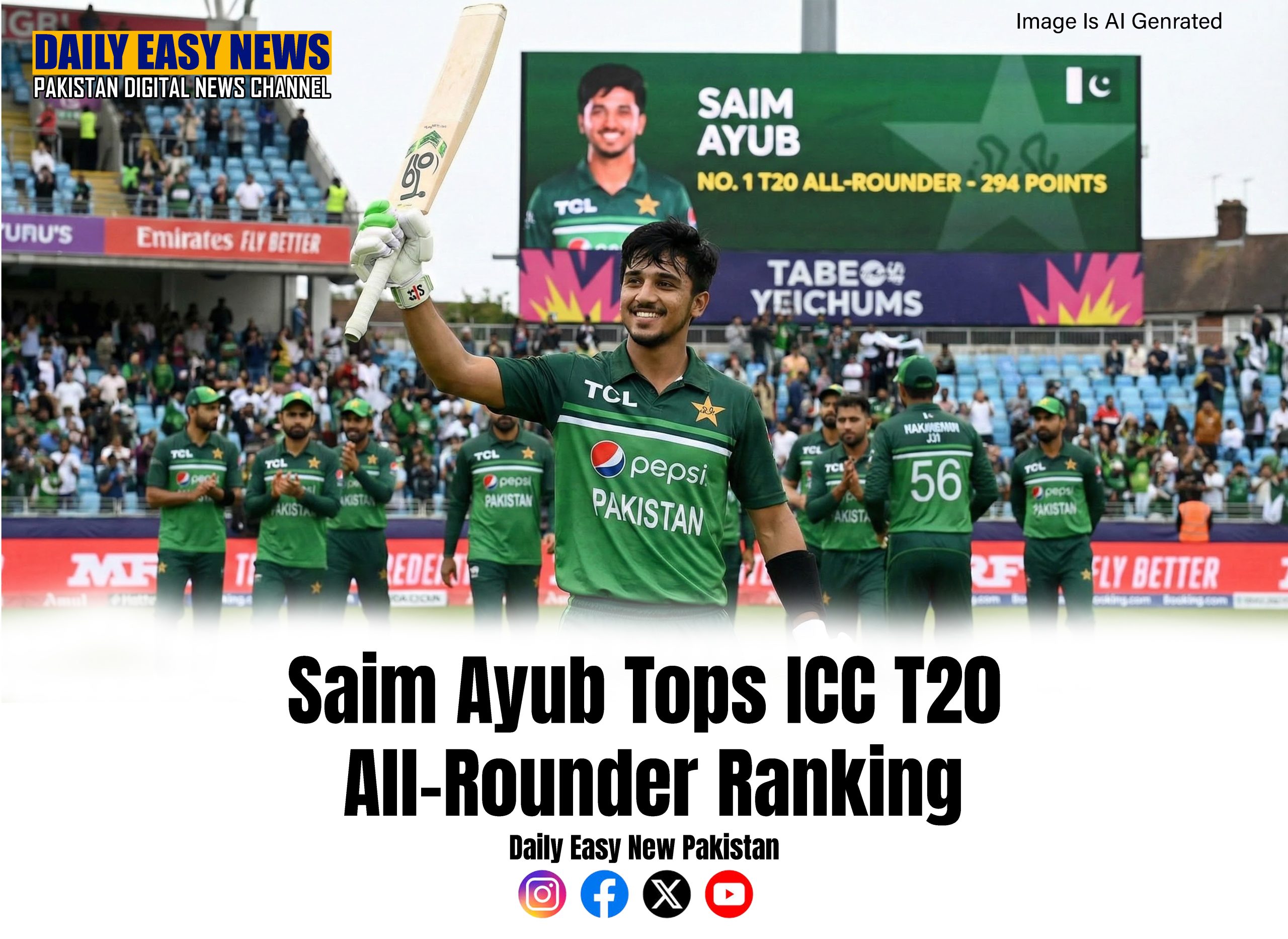 Pakistani cricketer Saim Ayub has regained the number one spot among T20 all-rounders, scoring 294 rating points and surpassing Zimbabwe’s Sikandar Raza. Muhammad Nawaz also made a significant rise, moving from seventh to fourth in all-rounder rankings.