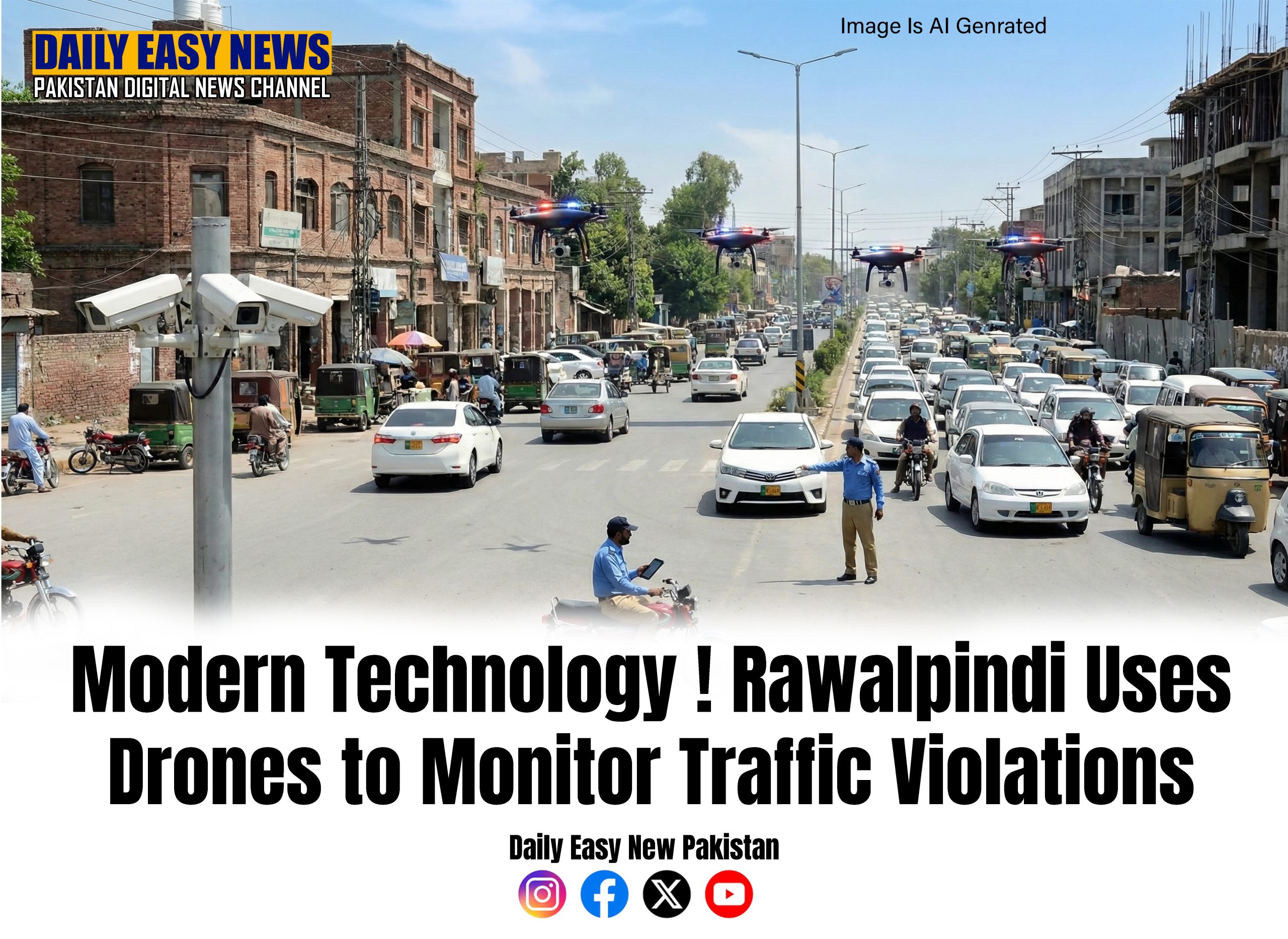 Rawalpindi has begun using drones and a citywide camera network to monitor traffic vio_lations .and improve road safety.Chief Technology Officer Farhan Aslam said drones will operate in crowded areas, enabling wardens to take swift action against underage driving, helmetless riding, one-way violations, and other dangerous behaviour.The city’s e-challan system, linked to the Safe City Command and Control Centre, issued 600 challans within four days of activation.Over 2,000 cameras have been installed at 359 locations to ensure safer travel, reduce accidents, and enhance monitoring across major routes.Disclaimer: This content is for informational purposes only. Image is AI Generated and is just for reference.