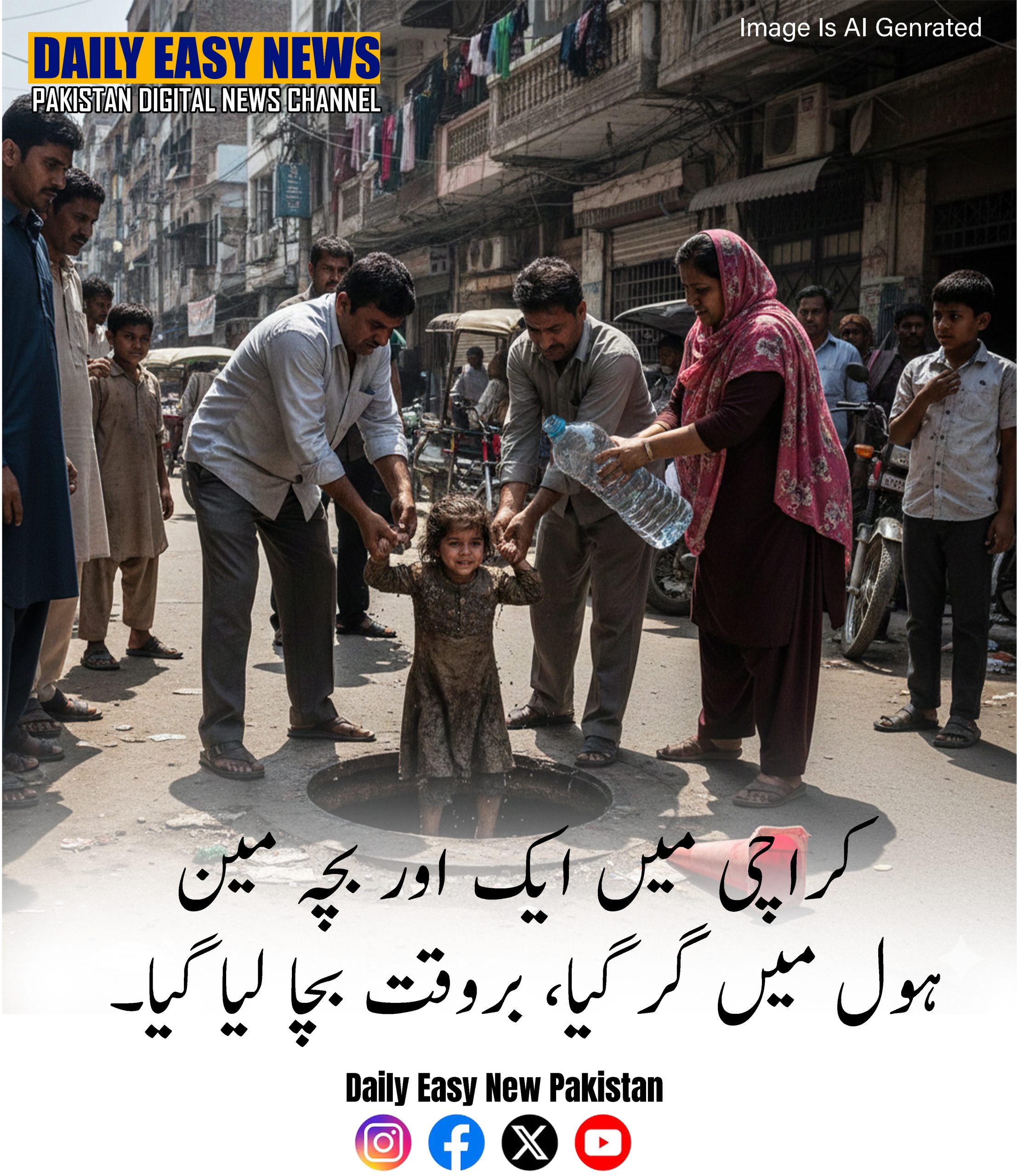 سوشل میڈیا پر گردش کرنے والے واقعے کی ایک ویڈیو کلپ میں دکھایا گیا ہے کہ بچے کی شناخت تین سالہ عمارہ کے طور پر کی گئی ہے جسے بغیر ڈھکن کے مین ہول سے بچایا گیا تھا۔ رہائشیوں کے مطابق، اگرچہ وائرل فوٹیج نے شہری حکام کو اس واقعے میں ملوث مین ہول پر ڈھانپنے کے لیے اکسایا، لیکن پڑوس میں کئی دوسرے خطرناک حد تک بے نقاب ہیں۔ “کیا وہ کسی اور بچے کے گرنے کا انتظار کر رہے ہیں؟” ایک رہائشی نے افسروں کے بے حس رویے پر مایوسی کا اظہار کرتے ہوئے پوچھا۔
