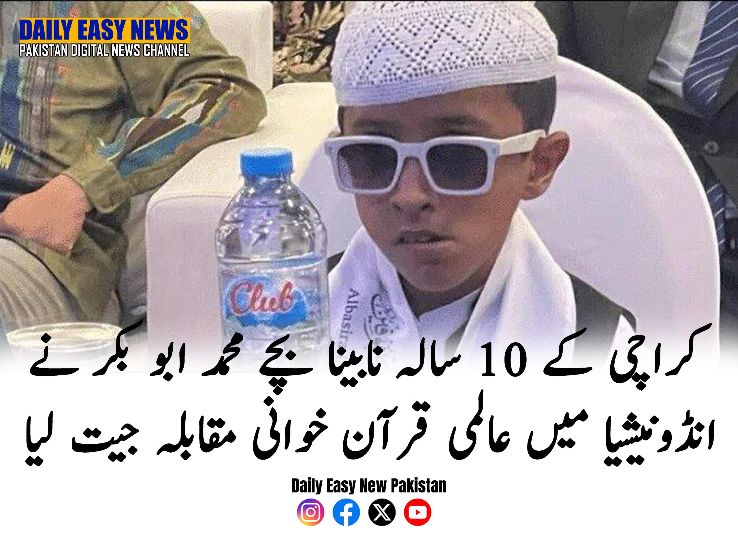 کراچی کے 10 سالہ نابینا بچے محمد ابو بکر نے انڈونیشیا میں عالمی قرآن خوانی مقابلہ جیت لیا