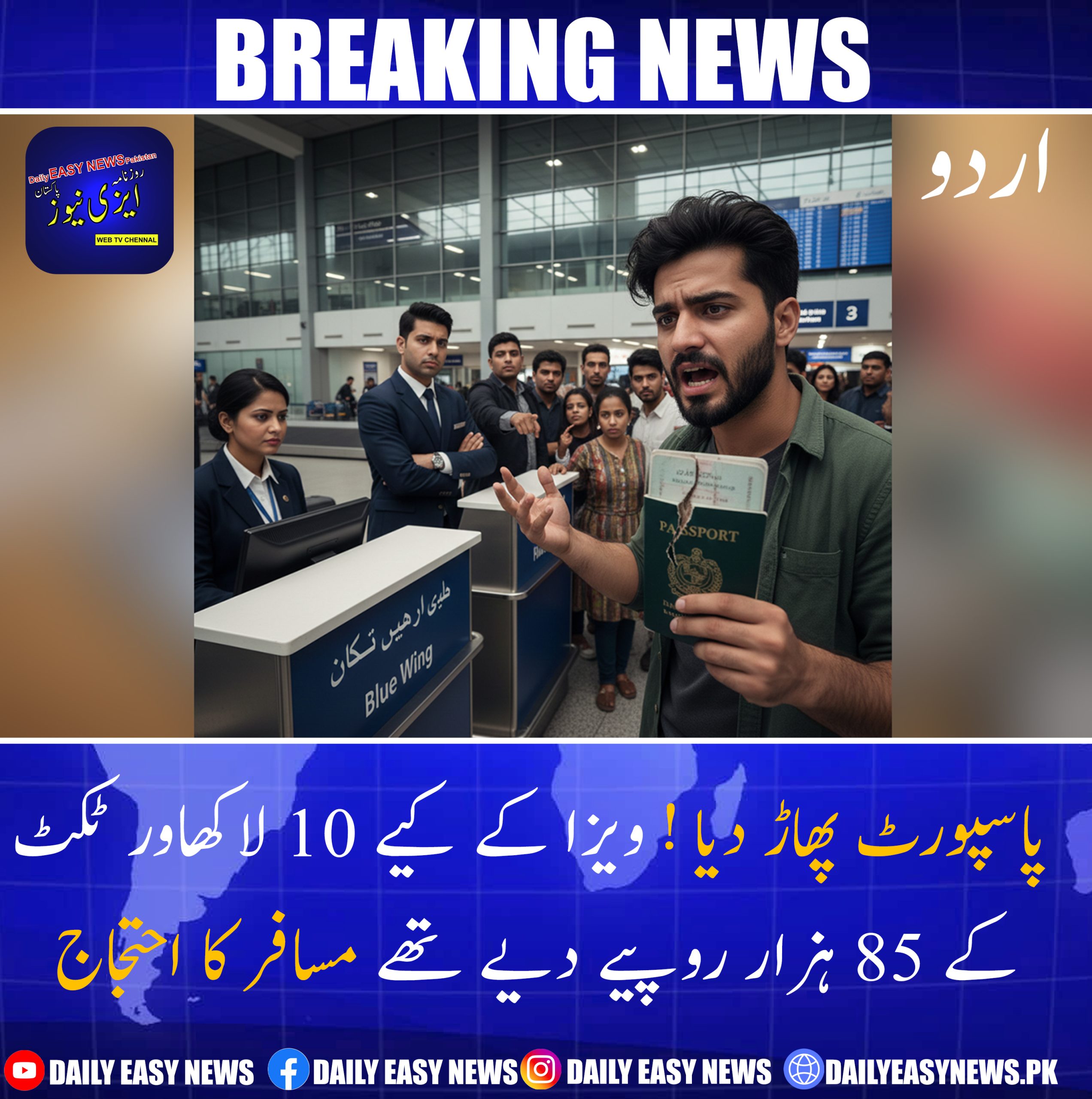 احتجاج کرنے والے نوجوان نے صورتحال پر صدمے اور پریشانی کا اظہار کرتے ہوئے بتایا کہ اس نے 10 لاکھ روپے کا ویزا اور 85 ہزار روپے کا ایئر لائن ٹکٹ خریدا ہے۔