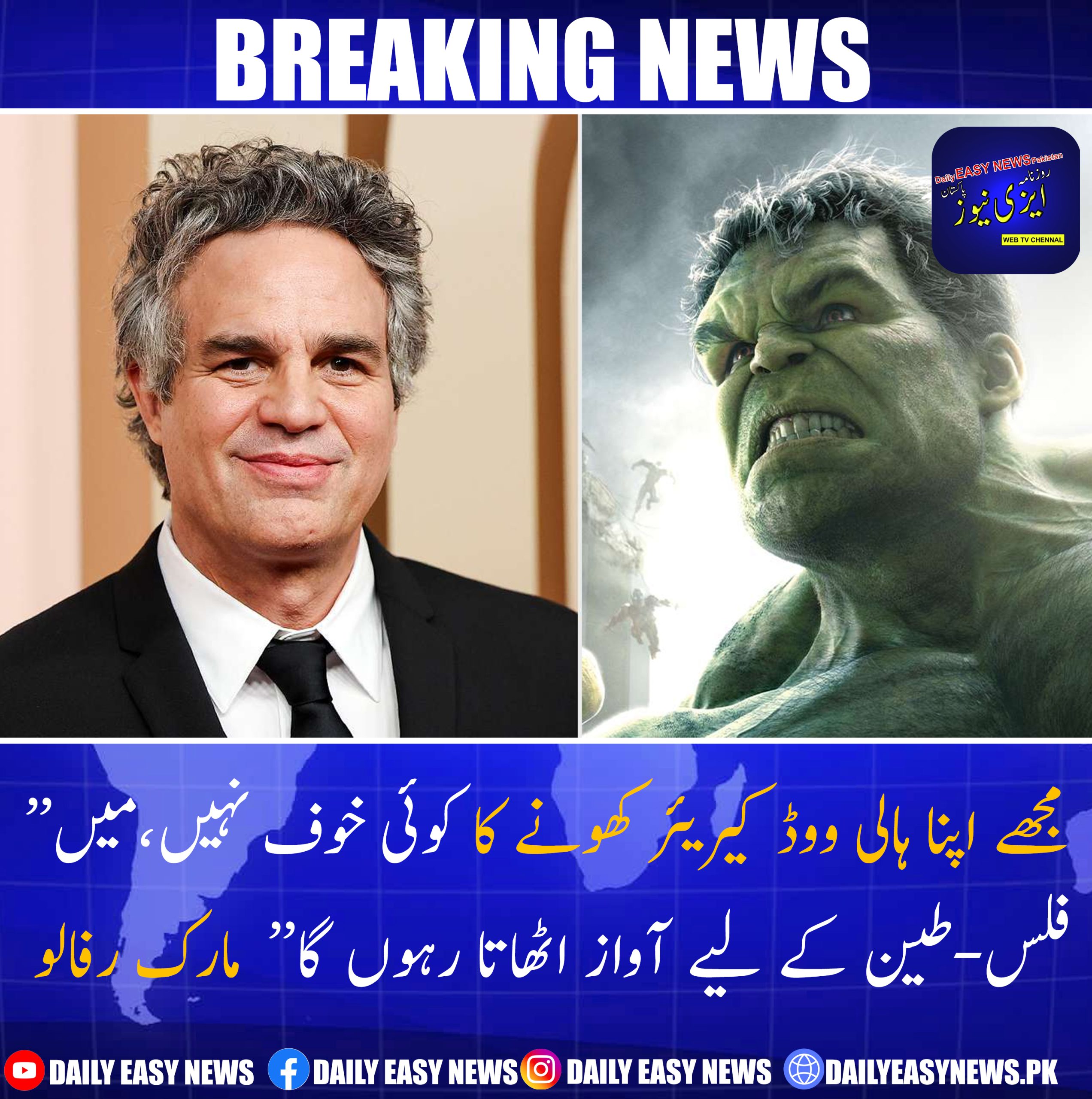 ’’مجھے اپنا ہالی ووڈ کیریئر کھونے کا کوئی خوف نہیں، میں فلس-طین کے لیے آواز اٹھاتا رہوں گا‘‘ مارک رفالو By Pak China - December 22, 2025 296 0 ’’مجھے اپنا ہالی ووڈ کیریئر کھونے کا کوئی خوف نہیں، میں فلس-طین کے لیے آواز اٹھاتا رہوں گا‘‘ مارک رفالو