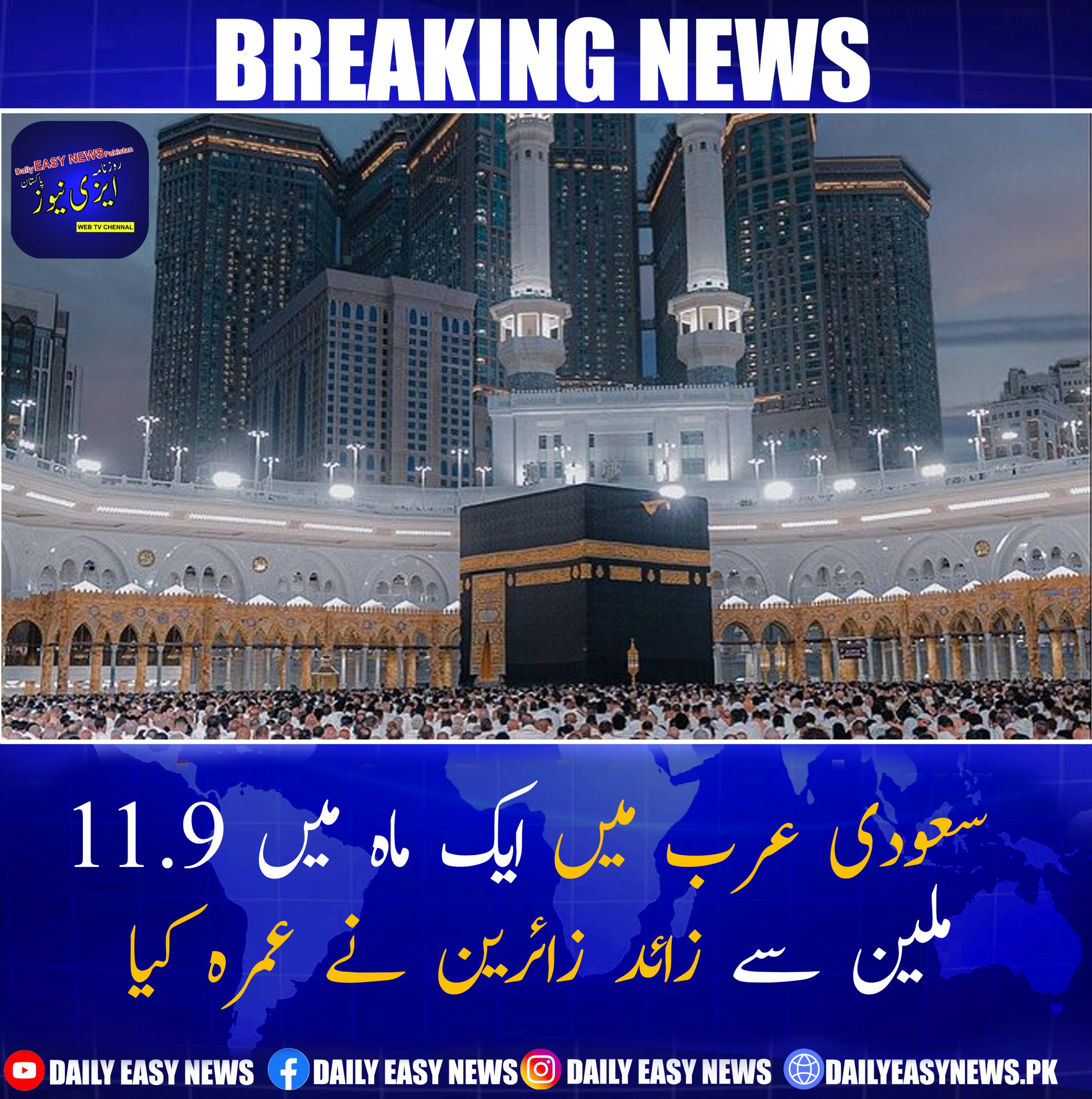 سعودی عرب میں گزشتہ ماہ زائرین کے دوروں میں نمایاں اضافہ دیکھنے میں آیا، جس میں 11.9 ملین سے زائد عمرہ ادا کر چکے ہیں۔