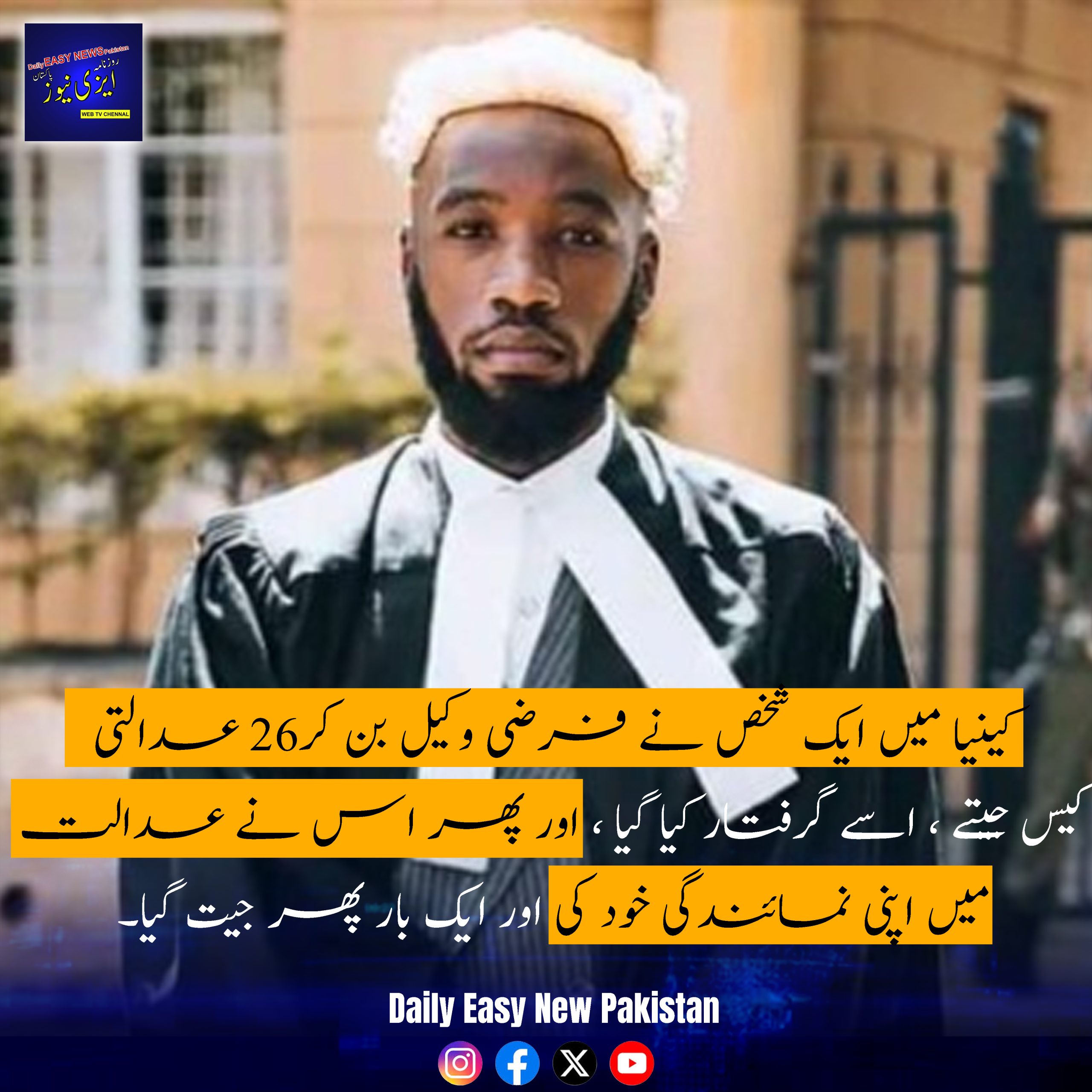 کینیا کے ایک شخص نے جعلی وکیل بن کر حیرت انگیز طور پر 26 عدالتی مقدمات جیت لیے۔ جب حکام نے اسے پکڑ لیا، تو اس نے عدالت میں اپنی نمائندگی خود کی اور ایک بار پھر جیت گیا، جس سے ثابت ہوتا ہے کہ حقیقت افسانے سے بھی زیادہ عجیب ہو سکتی ہے۔